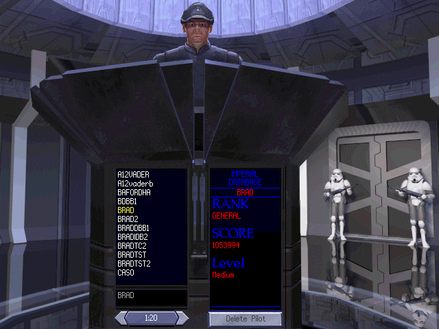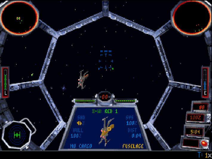 Where the remaster let everyone down was the sound. The cutscenes and menu areas of the game used pre-recorded versions of the old MIDI tracks, but they didn’t sound nearly as nice as the MIDIs would have on a good MIDI card. But the real omission was the in-flight music: iMUSE was gone, replaced by a few generic tracks from the films played via CD Audio (and if you remember, audio CDs could carry like what, 12 songs?). It was a devastating loss, and one that killed all sense of atmosphere in the game.